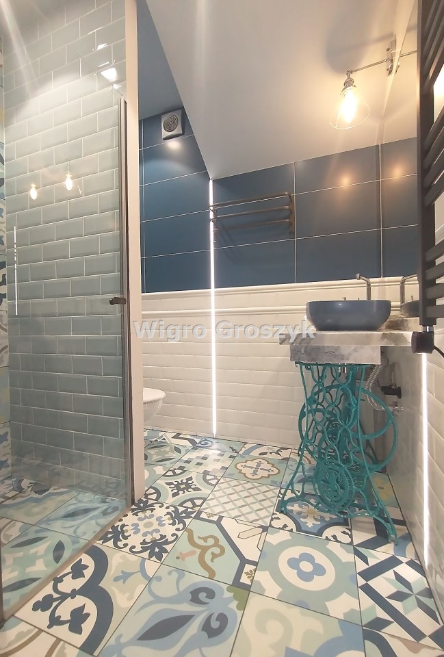 Łazienka na parterze została wyremontowana i zyskała ogrzewanie podłogowe. Na podłogach w pokojach położone są panele, w łazienkach terakota. Główna sypialnia ma dodatkowe ogrzewanie z instalacji kominka. Wymieniono okno balkonowe na parterze oraz w głównej łazience, a w garażu założono ocieplaną i szczelną bramę. Nowy kamienny taras został wyposażony w meble ogrodowe.