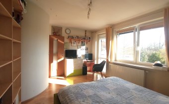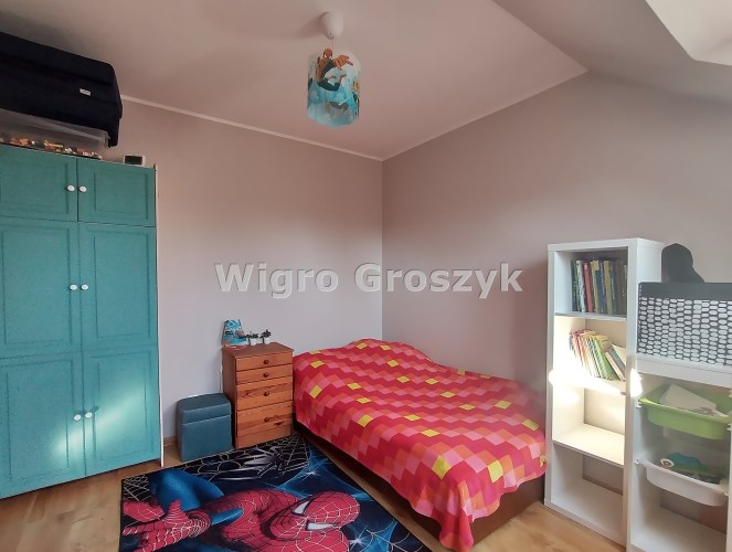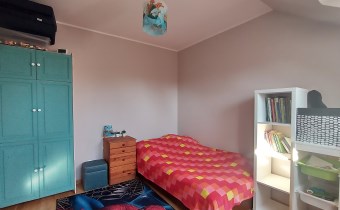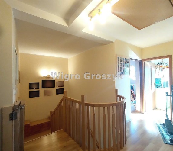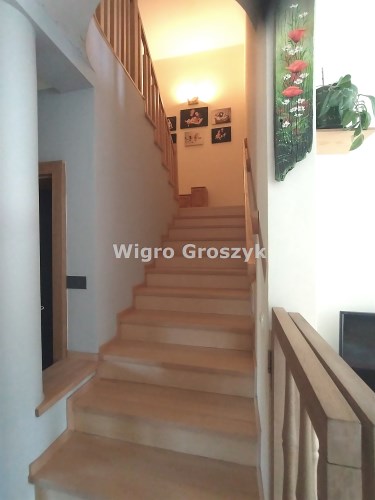 Na drugą kondygnację prowadzą schody z litego drewna. Na piętrze są 3 sypialnie, w tym jedna (ok. 18 m2) z balkonem i garderobą 3,85 m2, druga 15,5 m2 i trzecia z oknami połaciowymi (ok. 9 m2 po podłodze) oraz duża, widna łazienka ok.11 m2. Wnętrza są słoneczne, większość pomieszczeń ma okna od strony południowej.