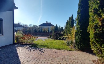 Działka posiada dwie bramy, zatem drugie auto można pozostawić na podjeździe przed garażem lub w innej części podwórka. Budynek jest przyłączony do miejskiej sieci wodociągowej i gazociągu, posiada ogrzewanie gazowe oraz kominek – ekonomiczne i komfortowe rozwiązania. Jest doprowadzony światłowód. W ogrodzie rozprowadzony został system podlewania roślin, odnowiono ogrodzenie a roślinność częściowo osłania teren działki od ulicy. Na posesji jest domek narzędziowy i przewidziane miejsce do składowania drewna.