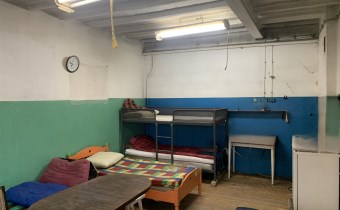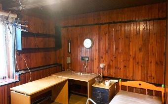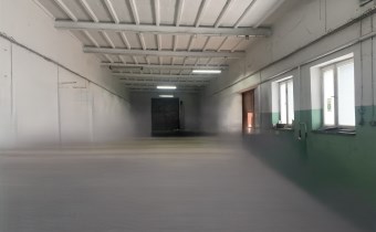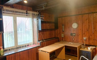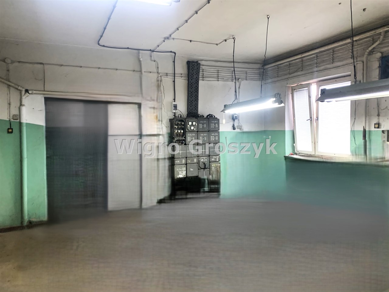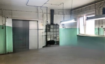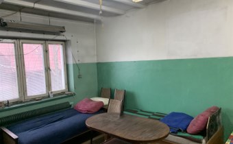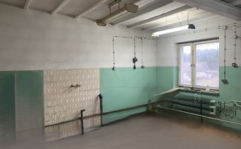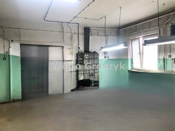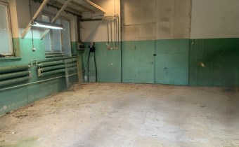Trzecie pomieszczenie ma wymiary 5,75m x 6,5m i jest w nim wejście schodami na piętro do części biurowej budynku (posiada także bramę o wymiarach wewnątrz ościeżnicy 2,83m x 2,9m). Z korytarza jest wejście do wszystkich pomieszczeń: 31m2, 24m2 ( to pełniło funkcję pomieszczenia socjalnego- doprowadzona woda i kanalizacja) i 13,5m2, a także do łazienki 3,1m2 i 2 toalet.