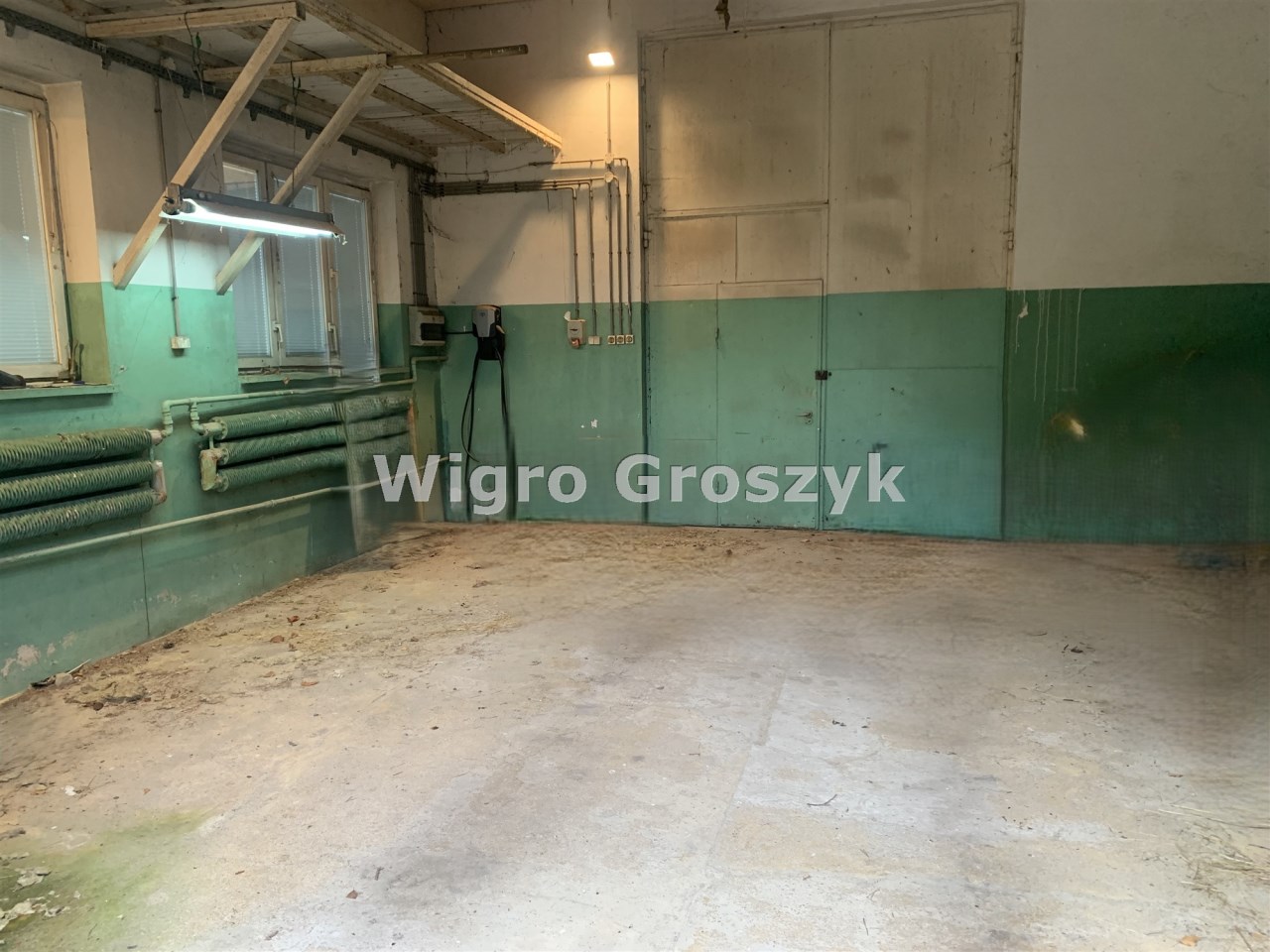 Największe pomieszczenie ma wymiary: 29,61m x 6,52m i dużą bramę wjazdową(wymiary wewnątrz ościeżnicy:2,82mx3,97m).