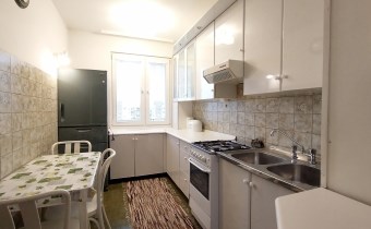 Lokal ma powierzchnię 46.1 mkw, jest narożny i rozkładowy; składa się z 2 oddzielnych pokoi pow. ok. 18 i 9mkw, oddzielnej widnej kuchni ponad prawie 8 mkw, łazienki z toaletą ok. 3mkw oraz przedpokoju. Z większego pokoju wyjście na balkon prawie 2 mkw i przyjemny widok na zieleń. Mieszkanie jest umeblowane i wyposażone: stół z krzesłami, telewizor, łazienka ewentualnie z pralką, z wanną. Dodatkowo pojemne szafy w przedpokoju. W kuchni szafki, chłodziarko - zamrażarka i kuchenka gazowa z piekarnikiem.