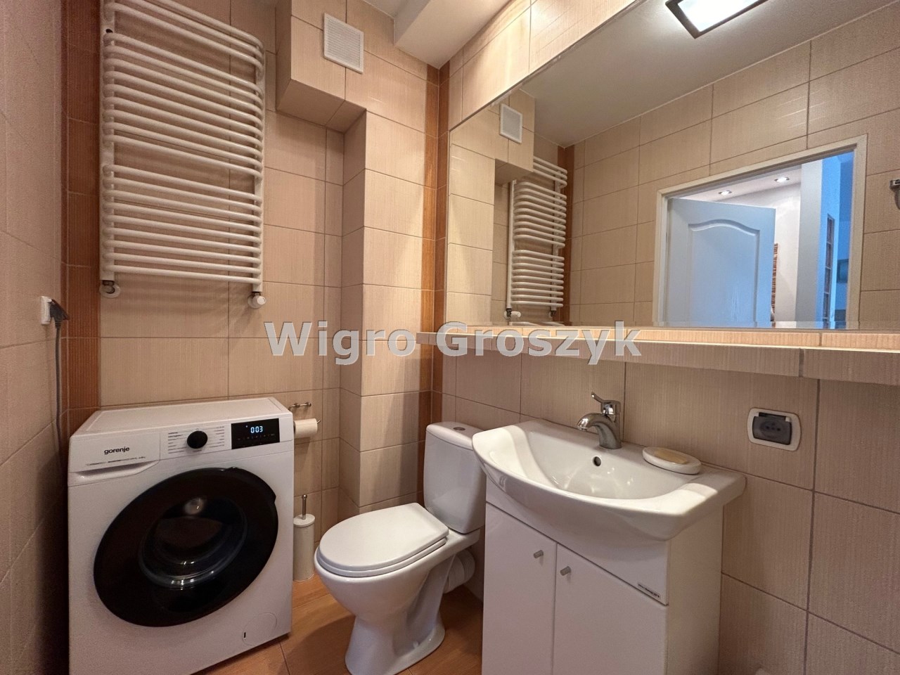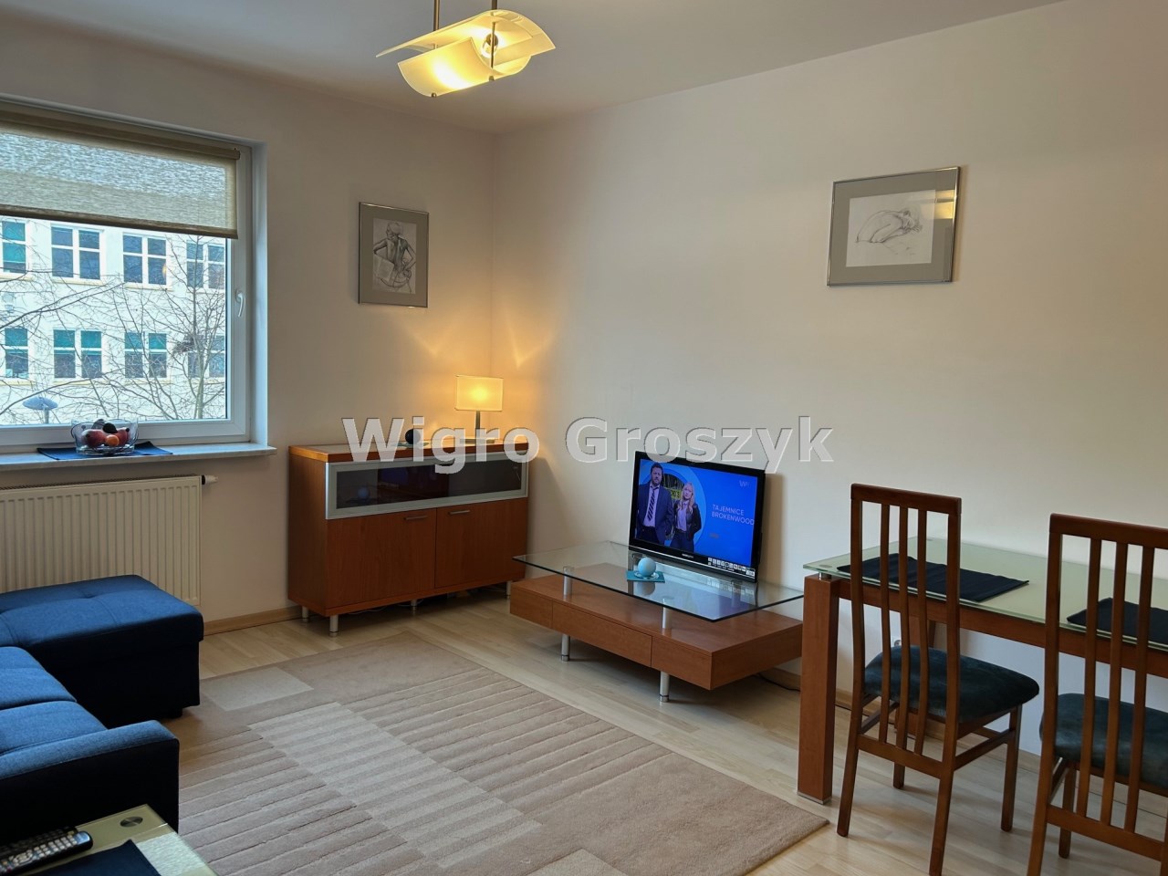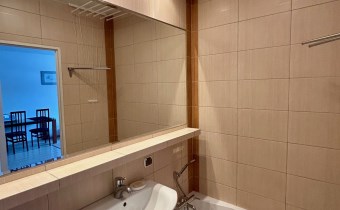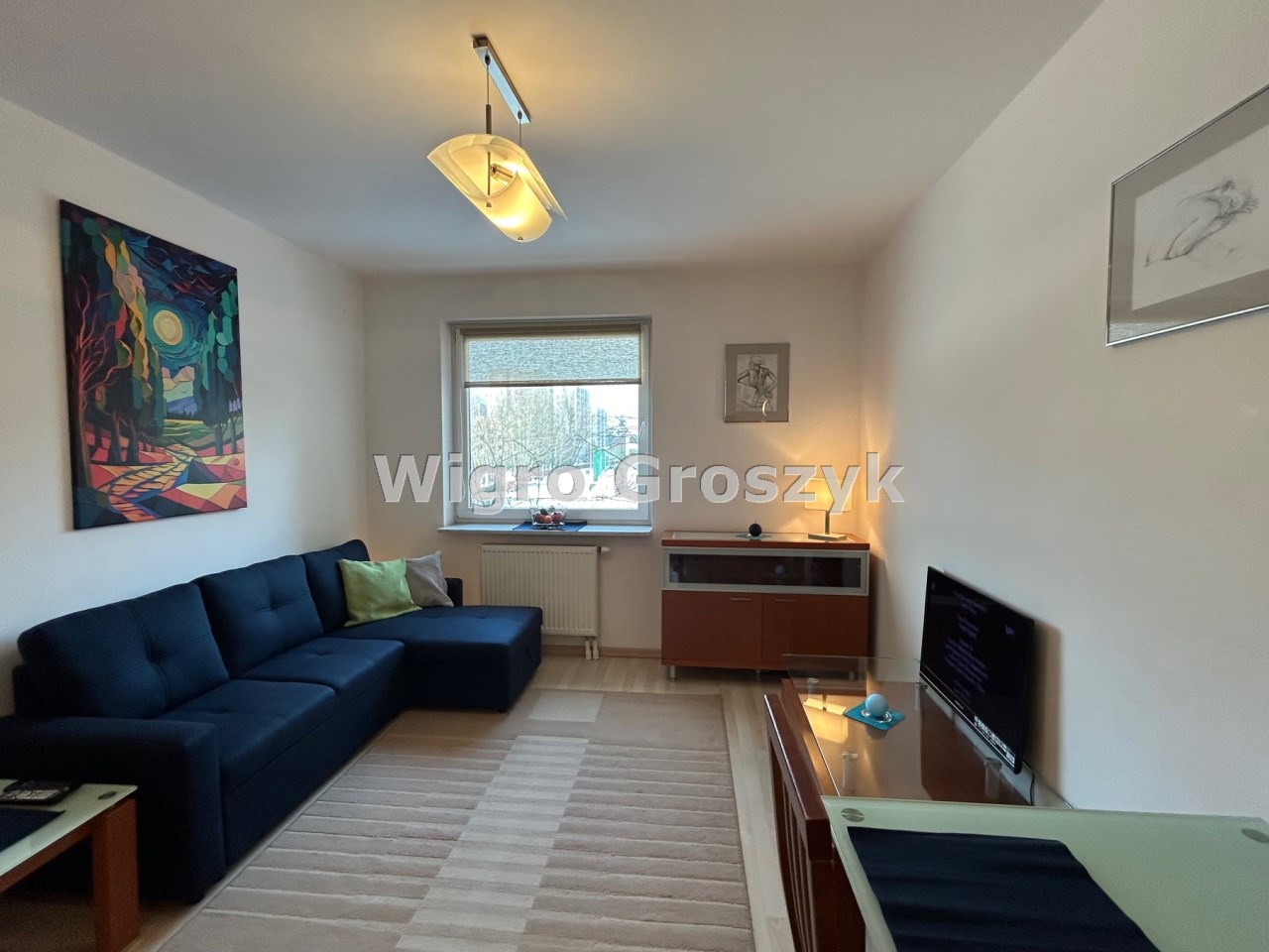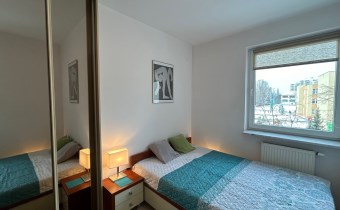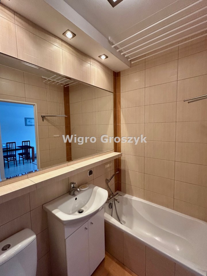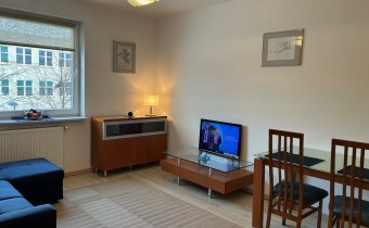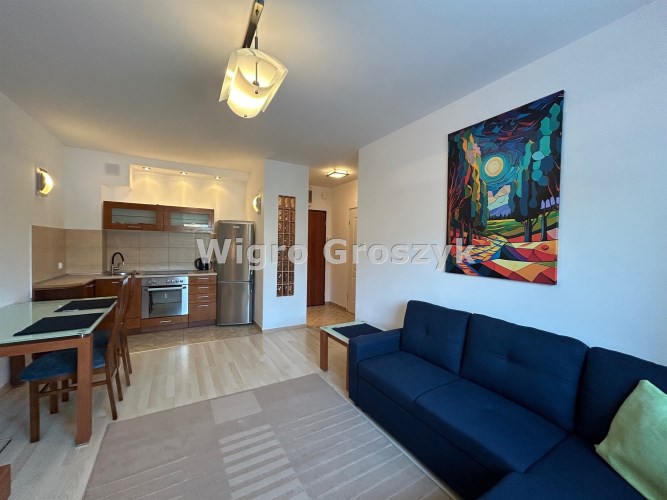 Dwa pokoje: pokój dzienny ok. 19m2 z kuchnią w aneksie, sypialnia ok. 8m2, łazienka ok. 4m2. W pokojach na podłodze panele, w łazience i aneksie kuchennym terakota. Mieszkanie jest w pełni wyposażone (płyta indukcyjna, piekarnik elektryczny w zabudowie, lodówka, pralka, telewizor) i umeblowane. Dobry standard wykończenia i wyposażenia.