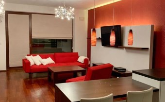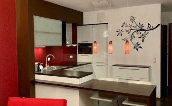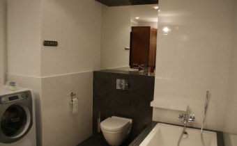 Apartament z 2009 roku , wykończony wysokiej klasy materiałami, w pełni umeblowany i wyposażony (AGD, zmywarka, lodówka, płyta grzewcza, pralko-suszarka, piekarnik elektryczny z funkcją mikrofali i grilla + drobne sprzęty )i RTV, podłączenie internet, telefon.