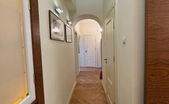 Właściciele zadbali o przywrócenie standardu apartamentu łącznie z jego umeblowaniem i wyposażeniem do jego stylu z lat 30 XX w. Salon z dużym balkonem, obszerna sypialnia oraz kuchnia połączona z jadalnią i miejscem umożliwiającym prace są znakomicie doświetlone przez duże okna. Lokal posiada dużą łazienkę, wc, spiżarnię, hol.